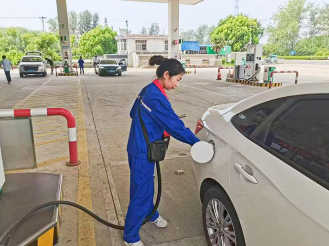 大徐加油站、金達加油站內車來車往,混合著汽車尾氣和車體熱量的地面熱氣升騰。一線工作人員頂著高溫在站內來回穿梭、跑動服務,一滴滴汗水掛在臉上,重復性的體力勞動考驗著他們的耐心和毅力,但工作人員絲毫未曾懈怠,專注的引導車輛、提槍加油,熱情服務每一位顧客。巡檢人員重點對加油機、油罐區(qū)、消防器材、電器線路、靜電接地線等重點區(qū)域和關鍵設備進行排查,并及時清理加油站周邊枯枝落葉、雜物雜草,杜絕消防隱患,營造規(guī)范有序的安全生產環(huán)境。