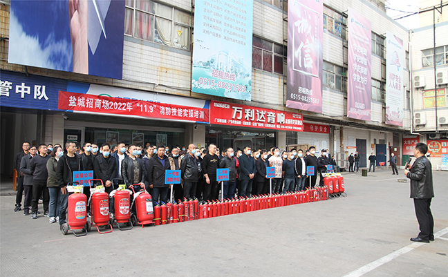 11月9日下午,鹽城招商場(chǎng)組織開(kāi)展“119”消防宣傳月消防技能實(shí)操演練活動(dòng)。市場(chǎng)相關(guān)部門、駐場(chǎng)城管中隊(duì)、義務(wù)消防隊(duì)員、市場(chǎng)保潔員、商戶代表共200余人參加活動(dòng)。