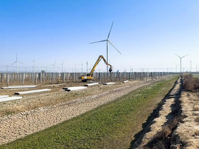 當下項目正有序推進,1#、2#、3#光伏發(fā)電單元的樁基施工已圓滿完成,13#、12#、11#、10#、7#、4#光伏發(fā)電單元的樁基施工,以及組件和支架安裝等后續(xù)工作也在穩(wěn)步推進,現(xiàn)已累計完成9000根管樁施工,預計將于4月中上旬圓滿完成光伏區(qū)的打樁作業(yè),隨后全面鋪開支架及組件的施工,積極搶抓工作進度,全力保障項目早日實現(xiàn)并網(wǎng)發(fā)電。