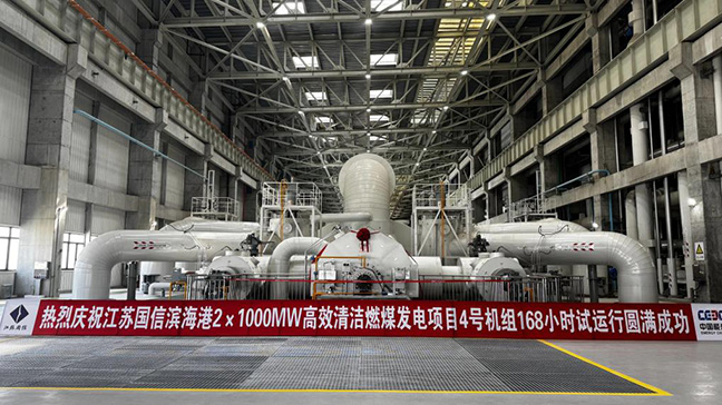 2025年4月15日0時8分,國能公司參股的江蘇國信濱海港2×1000MW支撐性電源項目4號機組順利通過168小時試運行,正式投入商業(yè)運營。