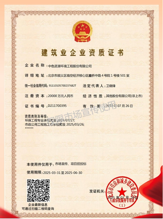 近日,集團(tuán)資源板塊傳來捷報(bào),經(jīng)北京市住房和城鄉(xiāng)建設(shè)委員會(huì)審核批準(zhǔn),中色環(huán)境公司成功獲批“市政公用工程施工總承包貳級(jí)資質(zhì)”證書,這一成果標(biāo)志著公司綜合實(shí)力的進(jìn)一步提升,對(duì)業(yè)務(wù)拓展、品牌提升及戰(zhàn)略布局有著極為深遠(yuǎn)的影響。