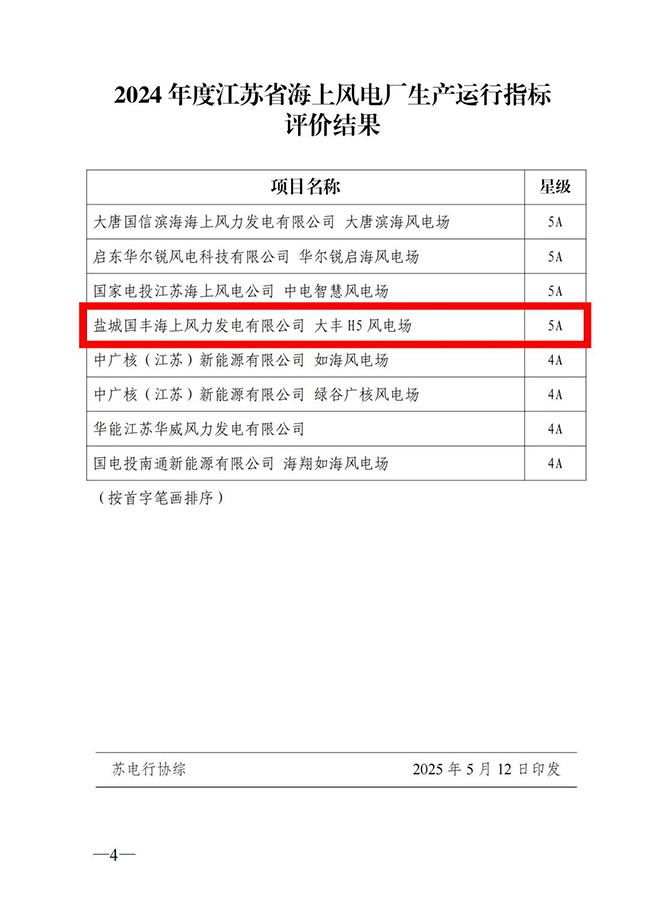 能力和高度協(xié)同的團隊協(xié)作精神,獲評“江蘇省AAAAA級海上風(fēng)電場〞稱號。