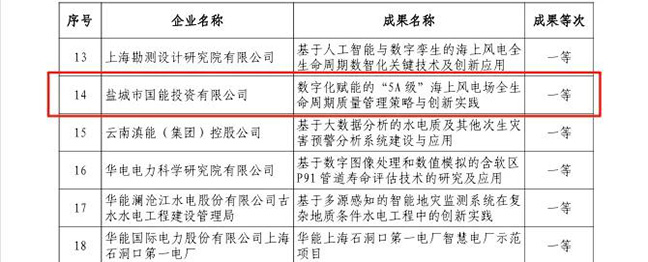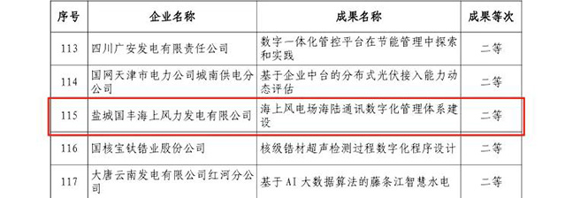 近日,中國水利電力質(zhì)量管理協(xié)會發(fā)布《關(guān)于公布2025年水利電力行業(yè)數(shù)字化質(zhì)量創(chuàng)新成果交流活動評價結(jié)果的通知》,集團(tuán)能源板塊國能公司《數(shù)字化賦能的“5A級”海上風(fēng)電場全生命周期質(zhì)量管理策略與創(chuàng)新實踐》、國豐公司《海上風(fēng)電場海陸通訊數(shù)字化管理體系建設(shè)》兩項創(chuàng)新成果脫穎而出,分別榮獲一等獎與二等獎。