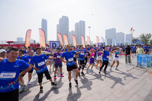 早上8點,鹽城國貿(mào)中心(先鋒中心)廣場已人聲鼎沸。參賽選手們陸續(xù)從四面八方齊聚于此,大家身著統(tǒng)一藍(lán)色賽事T恤,跟隨暖場音樂進(jìn)行熱身,現(xiàn)場化成歡樂的藍(lán)色海洋。“報名參加垂直登高賽后我一直在家里練習(xí)爬樓梯,雖然是第一次參加城市級垂直登高賽,但運動都是相通的,我一定能取得好名次。”喜歡跑馬拉松的成先生信心十足。