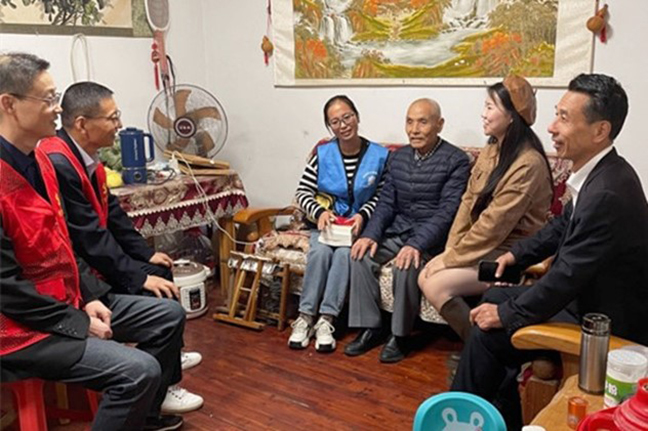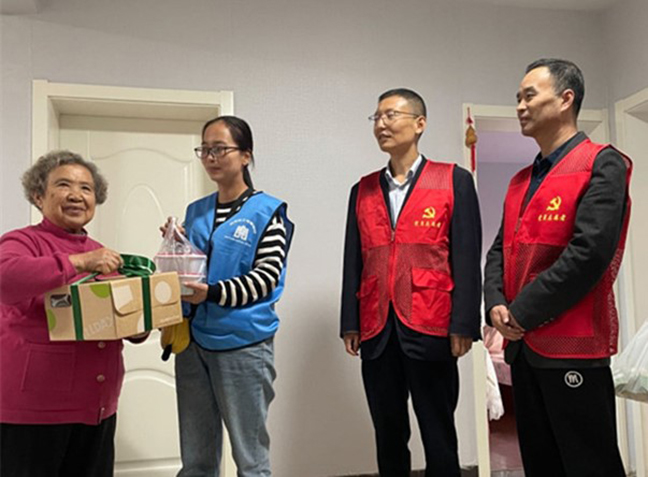活動中,黨員志愿者們來到桂苑社區(qū)華佳梅苑小區(qū),同社區(qū)工作人員一起為老黨員們送去精心準(zhǔn)備的食品和書籍,并與他們拉家常,傾聽他們的心聲,關(guān)切詢問他們的日常起居、身體健康情況,并叮囑老人們在換季時(shí)節(jié)注意天氣變化,及時(shí)增添衣物,保重身體、安度晚年。一聲問候,幾句細(xì)語,洋溢著濃濃的情意,讓老黨員們深切感受到黨組織的關(guān)懷與溫暖。